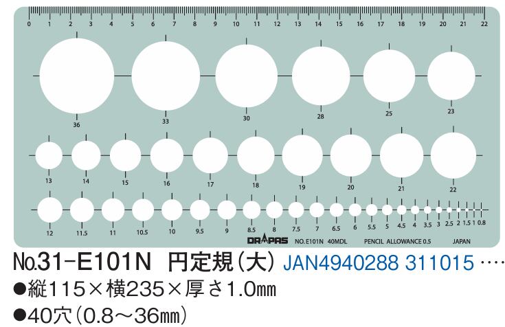 ドラパス テンプレート 31-E101N 円定規(大)JAN4940288311015