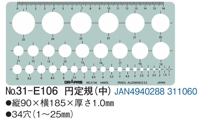 ドラパス テンプレート 31-E106 円定規(中)JAN4940288311060