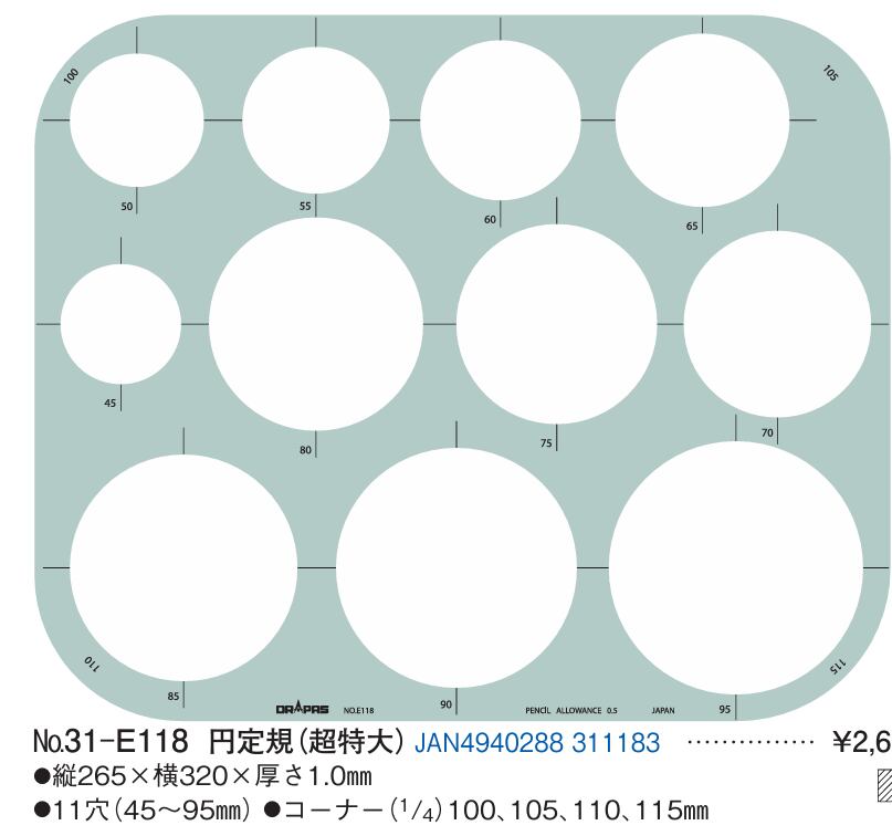 ## ドラパス テンプレート 31-E118 円定規(超特大)